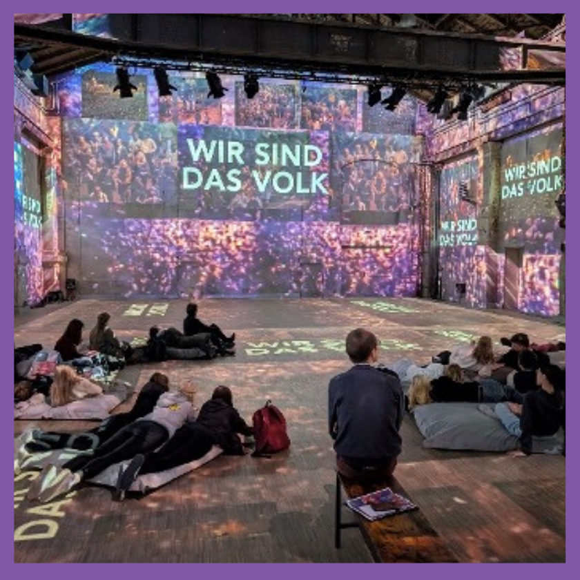 Im Oktober und November hatten und haben Azubis des ersten und zweiten Ausbildungsjahres VFA und KFB die Möglichkeit, eine multimediale, immersive Installation zu den Ereignissen rund um die Friedliche Revolution 1989 in Leipzig im Kunstkraftwerk zu sehen. Eine atmosphärische, bild- und klangreiche Umgebung macht die Anspannung, Angst, aber auch den Mut und die Hoffnung der damaligen Zeit erlebbar. Zugleich werden aber auch weitere wichtige Themen und Daten der deutsch-deutschen Geschichte beleuchtet. Die Show regt zum Nachdenken und Austausch über den revolutionären Aufbruch an. (Text: I. Hoffmann, ©Foto: privat)